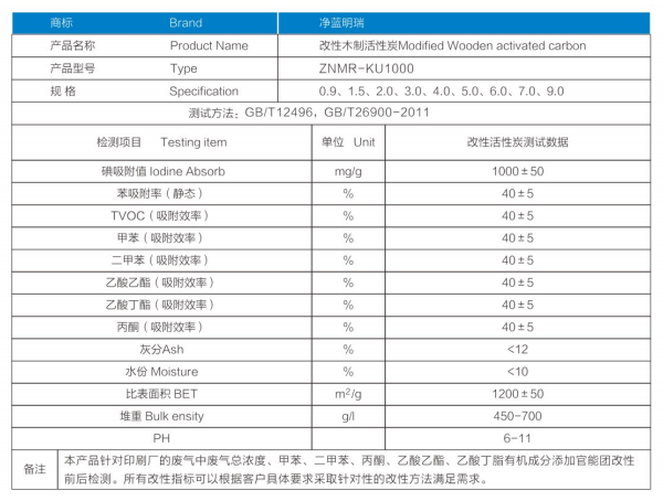 本产品原材料采用优质木屑和木炭,经特殊工艺精制而成,外为黑色粉末、颗粒等形状,再通过物理、化学处理方法,改变木质活性炭特性,使其具有比表面积大、微孔发达、吸附速度快、吸附容量高、脱色纯度高、使用寿命变长等特点。产品在空气污染治理和废水治理领域中应用广泛。