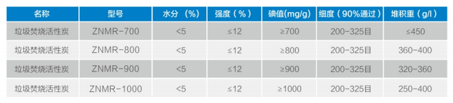 主要特点是着火点高,中空结构发达,其分子结构跟二噁英等有害物质非常接近,有效吸附率可达到95%以上。主要用于垃圾焚烧系统脱出烟尘中重金属(尤其是Hg)、二噁英(PCDDs)、呋喃(PCDFs)等污染物。